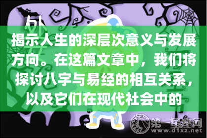 总的来说,八字学作为中华文化独特的智慧结晶,不仅帮助人们了解自己的性格与命运,还能为个人成长提供一定的指导和启发。在当今社会,尽管科技进步迅猛,但人们对命运的探索和对未来的掌握始终是人类关注的焦点。